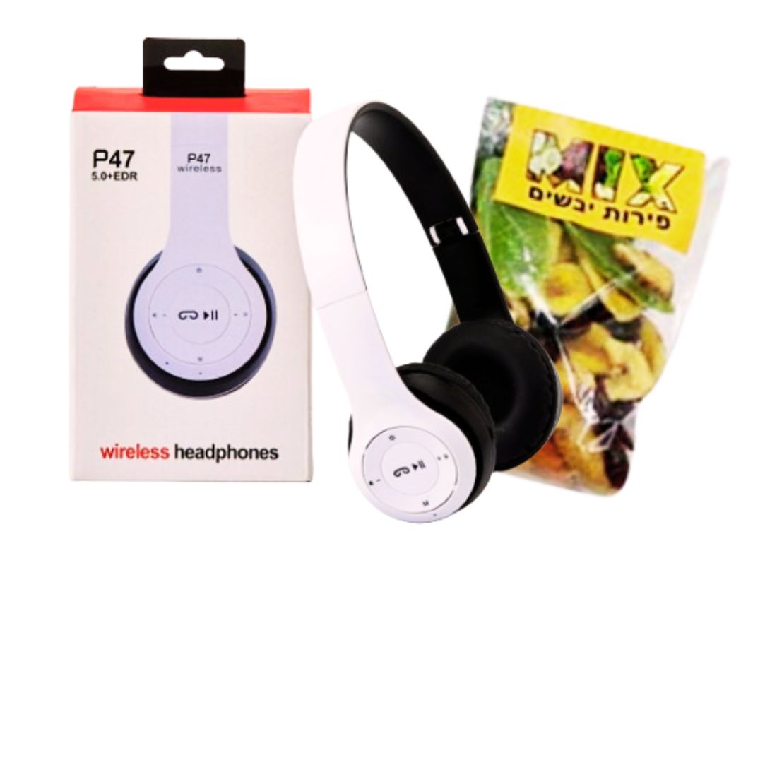 אוזניות בלוטוס P8 סופר בס מתקפלות איכותיות בתוספת מיקס פירות יבשים לטו בשבט