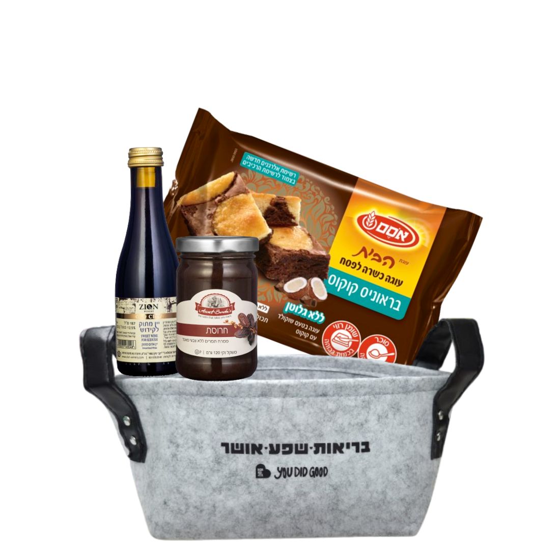 מארז דניאלה סלסלה עוגה כשרה לפסח, יין לקידוש, חרוסת