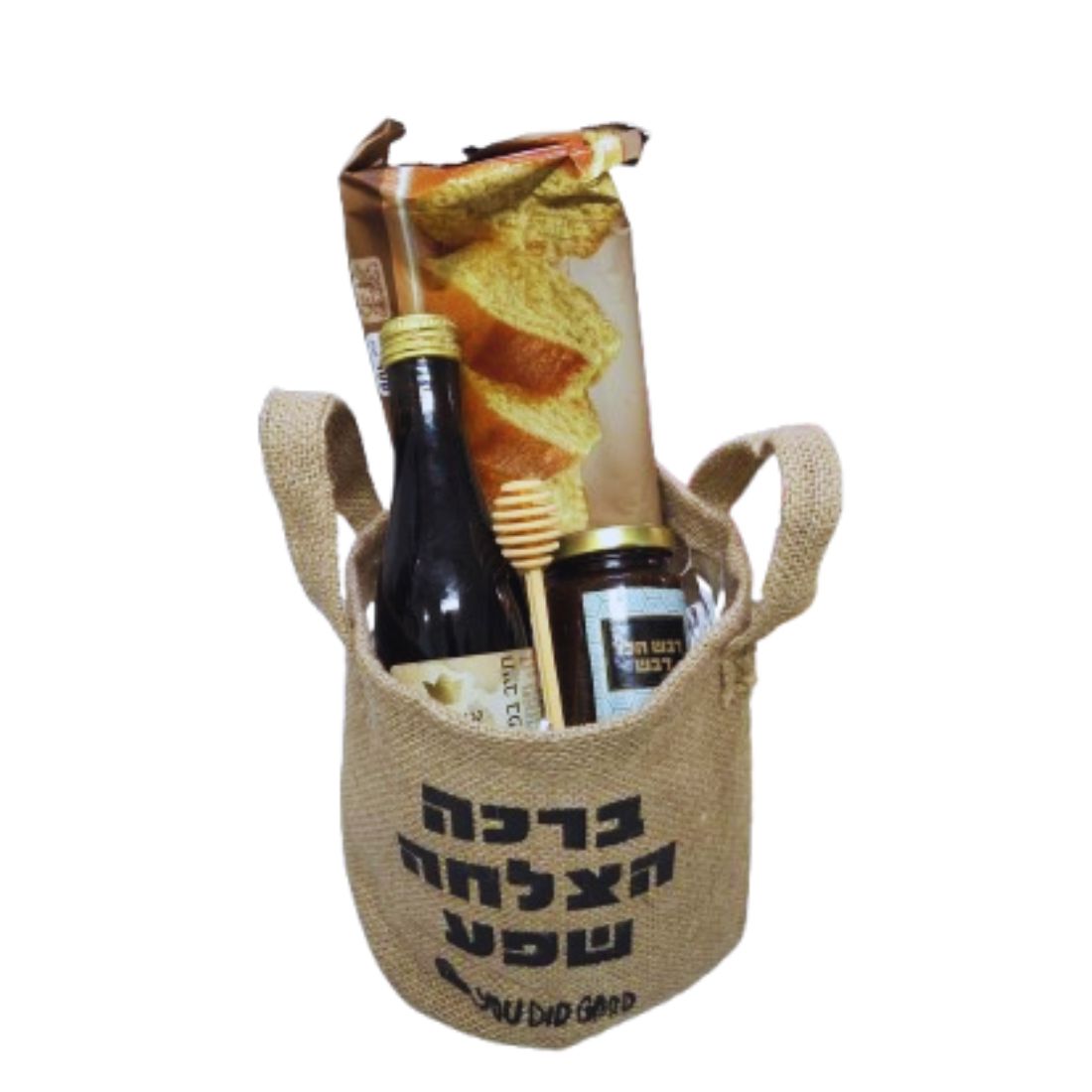 מארז יפית בסלסלה עוגת דבש, יין 187 מיל, דבש 130 גרם ומקל לדבש