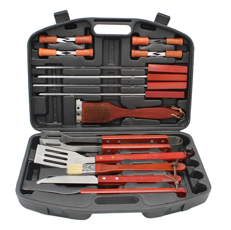 ערכת מנגל מקצועית הכוללת – 22 חלקים מנירוסטה עם ידיות עץ קשיחה ונוחה